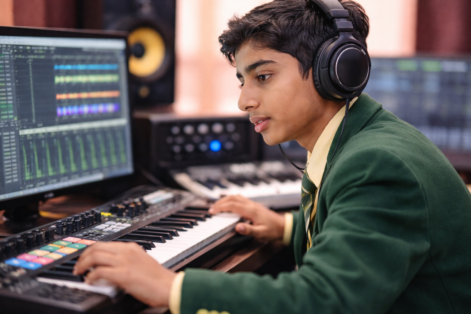From painting and clay modeling to digital art and music production — students explore, express, and create with